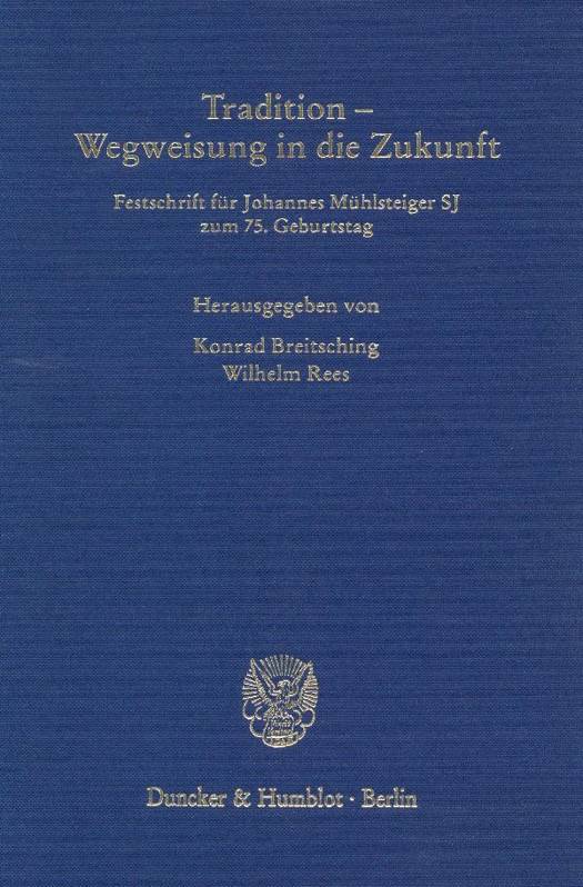 Wer in der Gegenwart die Vergangenheit vergißt, wird die Zukunft nicht meistern. Diese Grunderfahrung hat der Jubilar der vorliegenden Festschrift über Jahrzehnte seinen Hörerinnen und Hörern sowie einer beachtlichen Zahl von Schülern vermittelt. Sie kennzeichnet aber auch das wissenschaftliche Lebenswerk von Professor Johannes Mühlsteiger SJ, dessen markantesten Arbeiten im zweiten Teil der Festschrift abgedruckt sind. Gleichwohl ist Johannes Mühlsteiger in beiden Bereichen verankert, der Geschichte und der Gegenwart.
