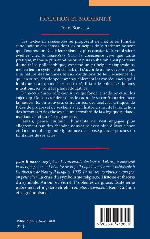 Les textes ici rassemblés se proposent de mettre en lumière cette logique des choses dont les principes de la tradition ne sont que l’expression. C’est leur thème le plus constant. Ils voudraient éveiller chez le benevolens lector la conscience vive que toute pratique, même la plus anodine ou la plus souhaitable, est porteuse d’une thèse philosophique, exprime un principe métaphysique, met en jeu un système doctrinal, qui s’accorde ou ne s’accorde pas à la nature des hommes et aux conditions de leur existence. Et qui, en outre, développe immanquablement les conséquences qu’il implique : car, quand le vin est tiré, il faut le boire. Les bonnes intentions, ici, sont les plus redoutables. Dans cette ample réflexion sur ce qui fonde la tradition et sur les enjeux qui la sous-tendent dans le cadre de sa confrontation avec la modernité, on trouvera, entre autres, des analyses critiques de l’idée de progrès et de ses liens avec l’historicisme, de la réduction des hommes et des choses à leur ustensilité, de la « logique pédago-maniaque » et du néo-paganisme. Jamais, pense l’auteur, l’humanité ne s’est engagée plus allègrement sur des chemins nouveaux avec plus d’insouciance et dans une plus grande ignorance des conséquences proches ou lointaines de ses actes.