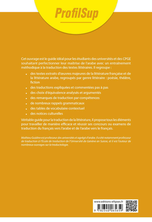 Ce manuel permet de perfectionner sa maîtrise de l’arabe avec un entraînement à la traduction des textes littéraires :