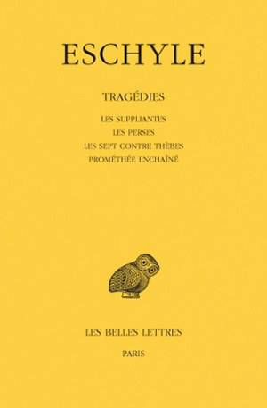 L’édition de Paul Mazon présente en deux volumes les tragédies d’Eschyle. Le tome I rassemble Les Suppliantes, Les Sept contre Thèbes et Prométhée Enchaîné. Aux deux tragédies guerrières, répondent celles des condamnés, Prométhée et les Danaïdes. L’introduction fait le point des connaissances relatives à un auteur qui fut sujet d’études et de glose dès l’Antiquité, et propose de judicieux critères pour distinguer la biographie de la fable. L’histoire des manuscrits est relatée en détail et assortie d’une orientation bibliographique. Chaque pièce est précédée d’une notice qui lui est propre. Celle-ci fournit, tous les éléments mythologiques, historiques et philologiques, nécessaires à la bonne compréhension de ces pièces parfois lacunaires. Des notes accompagnent la lecture.