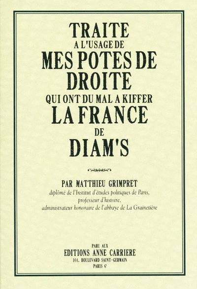 Convoquant divers penseurs, de Levinas à Isabelle Eberhardt en passant par Grégoire de Nysse, l'auteur dissèque avec humour et une attention sincère la chanson-culte de la « reine de la planète rap » (selon Technikart, septembre 2007) : « Ma France à moi ». Voilà qu'il découvre - c'est un homme de droite ! - une France qui le séduit, même et surtout quand elle fait preuve d'une certaine rudesse. Et si le sang bouillant des sauvageons rendait sa jeunesse à la vieille dame engoncée dans ses principes et son amertume ?