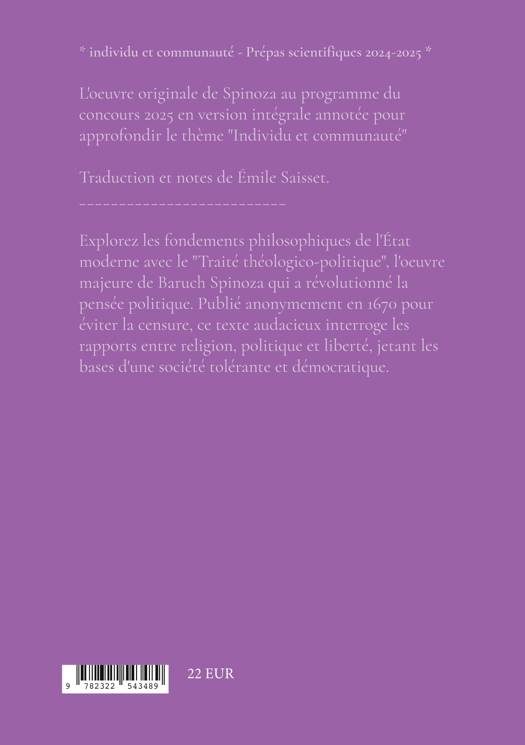 Que vous soyez passionné de philosophie politique, d'histoire des idées ou de questions de société, ce classique de la pensée moderne est incontournable. Laissez-vous guider par la prose limpide et puissante de Spinoza, et découvrez une oeuvre fondatrice qui a posé les bases de notre modernité politique. Un texte essentiel à lire absolument dans les catégories Philosophie, Sciences politiques ou Histoire.