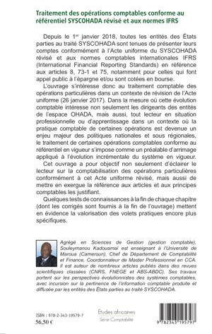 L'ouvrage s'intéresse donc au traitement comptable des opérations particulières dans un contexte de révision de l'Acte uniforme. Il a pour objectif non seulement d'éclairer le lecteur sur la comptabilisation des opérations particulières conformément à cet Acte uniforme révisé, mais aussi de mettre en exergue la référence aux articles et aux principes comptables les justifiant. Quelques tests de connaissances à la fin de chaque chapitre (dont les corrigés sont fournis à la fin de l'ouvrage) mettent en évidence la valorisation des volets pratiques encore plus spécifiques.