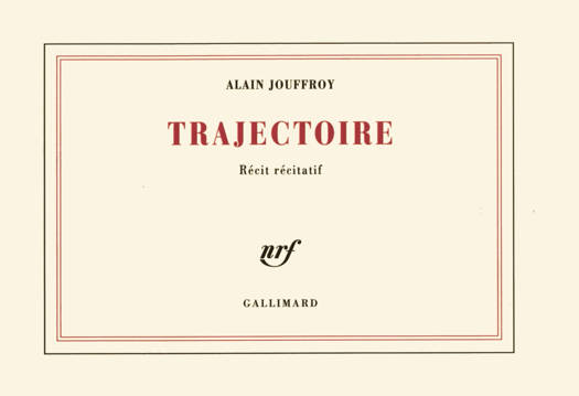 "Rien n'est plus terrible que de se taire, quand on ressent la nécessité de parler. Rien n'est moins supportable que le silence des autres, quand on tente de répondre à cette nécessité. Tout ce qu'on lit, tout ce qu'on entend tous les jours doit être considéré comme une seule parole collective en rupture avec elle-même. C'est à l'intérieur de ce texte, mi-écrit mi-parlé, que l'écriture de l'homme isolé devant sa page se faufile, comme un fil entre des millions d'autres fils en connexion. Mais quand on prend conscience de la mobilité des idées révolutionnaires, et qu'on réentend cette parole subversive qui, de Saint-Just à "Che" Guevara, rejoint finalement le centre de toutes les autres paroles, on commence à comprendre que la voix personnelle n'est jamais faite pour porter l'écho d'un seul individu. On cherche, alors, à lier ce que l'on pense avec ce que les autres ont pensé et dit, et l'on s'aperçoit très vite qu'écrire devient un acte historique, comme tous les actes humains qui relient deux réalités séparées. C'est en écrivant Trajectoire que je crois avoir saisi un certain fil conducteur qui permet, même au plus solitaire des individus, de se lier à la plus collective des révolutions : par un nouveau type d'écriture, où tous les textes, toutes les paroles seraient mis en contact, comme ils le sont dans la vie. J'ai donc suivi la trajectoire invisible des idées révolutionnaires, qui se poursuit, aujourd'hui, dans la trame des événements et des oeuvres. J'ai voulu en faire apparaître la violente continuité, au sein de toutes les discordes, et pour cela, j'ai juxtaposé, page après page, ma vie et celle du monde." Alain Jouffroy.