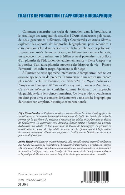 Comment construire son trajet de formation dans le brouillard et le brouillage des temporalités actuelles ? Deux chercheuses polonaises, de deux générations différentes, Olga Czerniawska et Aneta Slowik, explorent les apports de l'approche biographique pour répondre à cette question selon deux perspectives : la francophone et la polonaise. Exploration croisée, mobilisant trois auteurs français, un québécois, deux suisses, un brésilien et neuf polonais.