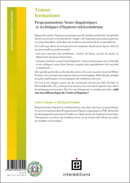 L'originalité de ce livre consiste à transformer la "magie" de l'hypnose, qui se pratique depuis des siècles sous des formes diverses, en procédures précises, compréhensibles et utiles à de nombreux domaines de la vie quotidienne, personnelle ou professionnelle (arrêter de fumer, vaincre des phobies ou des peurs, mieux communiquer, acquérir de nouvelles compétences, etc.). Les concepts sont exposés selon une suite logique allant des plus simples aux plus sophistiqués et accompagnés de nombreux exercices.