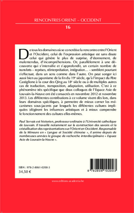 Les différentes contributions à ce volume visent, dans leurs domaines spécifiques, à permettre de mieux cerner les mécanismes sous-jacents par lesquels les différentes cultures impliquées (di)gèrent les influences artistiques et à mieux comprendre le fonctionnement des cultures elles-mêmes.