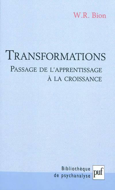 Transformations (1965) poursuit et conclut l’exploration théorique entreprise dans Aux sources de l’expérience (1962) et Éléments de la psychanalyse (1963). Ce dernier volet d’une trilogie consacrée aux destins de la pensée reprend la problématique qui sous-tendait les deux livres précédents, en l’étendant à l’analyse proprement dite. Quelles sont les conditions et les modalités d’une croissance psychique, non seulement dans « l’appareil de pensée », mais dans le cadre même de la cure analytique ? Telle est la question à laquelle tente de répondre cet ouvrage.