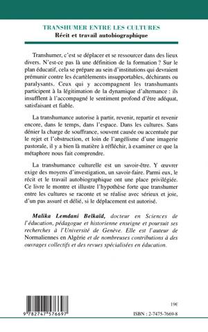 Transhumer, c'est se déplacer et se ressourcer dans des lieux divers. N'est-ce pas là une définition de la formation ? Ceux qui y accompagnent les transhumants participent à la légitimation de la dynamique d'alternance : ils insufflent à l'accompagné le sentiment profond d'être adéquat, satisfaisant et stable. La transhumance autorise à partir, revenir, repartir et revenir encore, dans le temps, dans l'espace. Dans les cultures. Transhumer entre les cultures se raconte, se réalise si le déplacement est autorisé. Le travail autobiographique en constitue un outil privilégié.