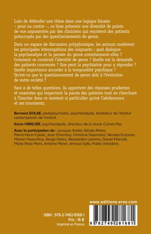 Loin de défendre une thèse dans une logique binaire – pour ou contre –, ce livre présente une diversité de points de vue argumentés par des cliniciens qui reçoivent des patients préoccupés par des questionnements de genre.