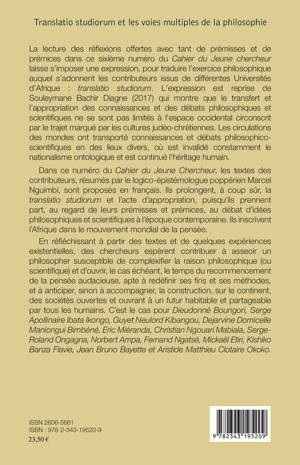 La lecture de ces réflexions montre que le transfert et l'appropriation des connaissances et des débats philosophiques et scientifiques ne se sont pas limités à l'espace occidental circonscrit par le trajet marqué par les cultures judéo-chrétiennes. Les circulations des mondes ont transporté connaissances et débats philosophico-scientifiques en des lieux divers. Dans ce numéro du Cahier du Jeune Chercheur, les textes prennent part au débat d'idées philosophiques et scientifiques à l'époque contemporaine. Ils inscrivent l'Afrique dans le mouvement mondial de la pensée.