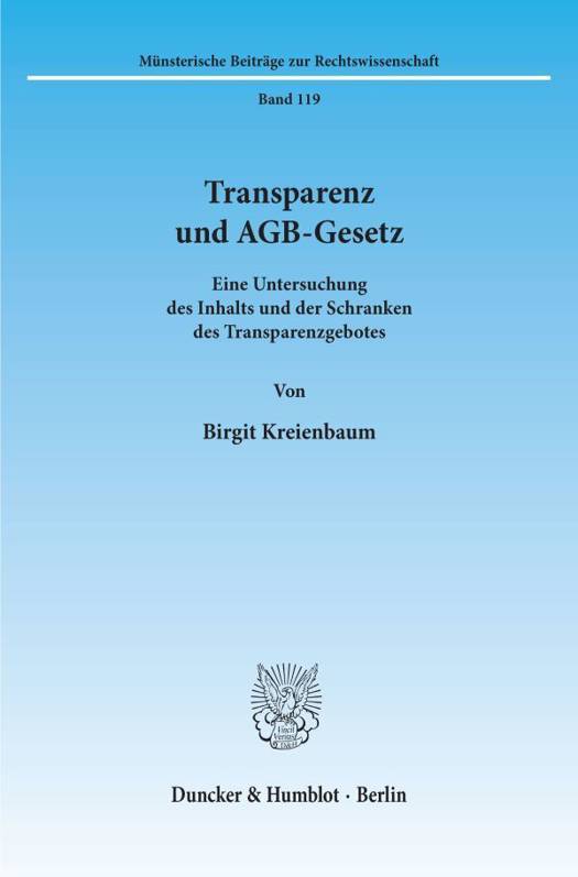 Das Transparenzgebot wurde ursprünglich nur als weiteres Argument bei der Begründung der Unangemessenheit einer AGB-Klausel herangezogen. Im sogenannten Hypothekenzinsurteil vom 24. 11. 1988 entschied der BGH, daß allein ein Verstoß gegen das Transparenzgebot ausreichen könne, um die Unangemessenheit einer AGB-Klausel nach 9 Abs. 1 AGBG herbeizuführen. Die Arbeit widmet sich folgenden Fragen: Enthält das AGBG ein Transparenzgebot? Kann ein Verstoß gegen das Transparenzgebot eine unangemessene Benachteiligung i.S.d. 9 Abs. 1 AGBG sein? Welche Anforderungen müssen AGB-Klauseln erfüllen, um transparent zu sein? Durch systematische Analyse der einschlägigen Normen des AGBG, diverser Fallgruppen und des Schutzzweckes des AGBG wird herausgearbeitet, daß der Transparenzgedanke als übergreifendes Prinzip des AGBG aufzufassen ist, der eine Ausdehnung auf weitere, gesetzlich nicht geregelte Fallgruppen intransparenter Klauseln zuläßt. Insofern liegt eine planwidrige Regelungslücke im AGBG vor, die durch Einfügung des Transparenzgebotes in 9 Abs. 1 AGBG geschlossen werden kann. Das Transparenzgebot bildet dabei eine eigenständige Kategorie des 9 Abs. 1 AGBG, welche gleichberechtigt neben der inhaltlichen Interessenabwägung steht und einen eigenen Abwägungsprozeß erfordert.