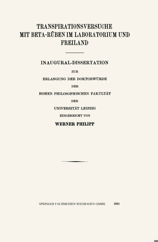 Dieser Buchtitel ist Teil des Digitalisierungsprojekts Springer Book Archives mit Publikationen, die seit den Anfängen des Verlags von 1842 erschienen sind. Der Verlag stellt mit diesem Archiv Quellen für die historische wie auch die disziplingeschichtliche Forschung zur Verfügung, die jeweils im historischen Kontext betrachtet werden müssen. Dieser Titel erschien in der Zeit vor 1945 und wird daher in seiner zeittypischen politisch-ideologischen Ausrichtung vom Verlag nicht beworben.
