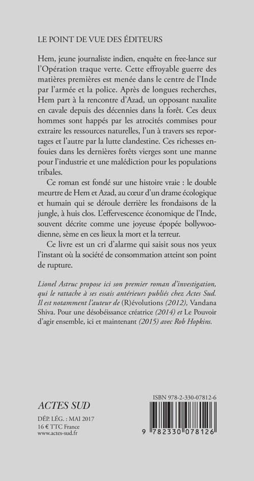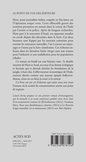 Ce roman est fondé sur une histoire vraie : le double meurtre de Hem et Azad, au coeur d'un drame écologique et humain qui se déroule derrière les frondaisons de la jungle, à huis clos. L'eff ervescence économique de l'Inde, souvent décrite comme une joyeuse épopée bollywoodienne, sème en ces lieux la mort et la terreur.