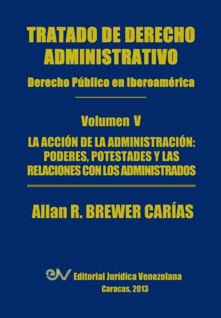 El Tratado de Derecho Administrativo del profesor venezolano Allan R. Brewer-Carías recoge, en seis volúmenes, con una sistematización impecable, materialmente toda la extensa obra del autor en el campo del derecho administrativo escrita durante los últimos cincuenta años, desde que se inició en la docencia y en la investigación en la Universidad Central de Venezuela en 1963; siendo, la misma una muestra específica del desarrollo del Derecho Administrativo Iberoamericano, que se produjo en paralelo con el desarrollo del derecho administrativo español contemporáneo, desde los tiempos de la fundación de la Revista de Administración Pública (1958). La obra, editada sin pérdida de espacio, comprende todos los estudios del autor sobre la teoría del derecho administrativo, su objeto, sus supuestos fundamentales, y su encuadramiento constitucional (Tomo I); sobre la Administración Pública, sus fundamentos, su organización, sus trasformaciones y sus problemas (Tomo II); sobre el régimen de la actividad administrativa, particularmente el régimen de los actos administrativos y de los contratos administrativos (Tomo III); sobre el régimen del procedimiento administrativo, con especial énfasis en su codificación en el derecho comparado iberoamericano (Tomo IV); sobre el régimen de la acción administrativa, particularmente en cuanto a los poderes, potestades y relaciones con los administrados (Tomo V); y sobre el régimen del control jurisdiccional contencioso administrativo sobre la Administración Pública y su actividad (Tomo VI). Cada Tomo, por tanto, tiene hasta cierto punto su propia autonomía, de manera que este Tomo V de 1.072 páginas, sobre "La acción de la Administración: Poderes, Potestades y Relaciones con los administrados," incluye todos los estudios del autor sobre las relaciones entre la Administración y los administrados, el ejercicio del poder discrecional de la Administración y sus límites; sobre la potestad normativa, la potestad reguladora, la potestad expropiatoria y la potestad nacionalizadota del Estado; sobre las formas de la actividad administrativa, específicamente, el servicio público y la policía administrativa; sobre la intervención del Estado en la gestión de la economía, con especial tratamiento del régimen de la empresas públicas en el derecho comparado; y sobre el control de la actividad de la Administración.