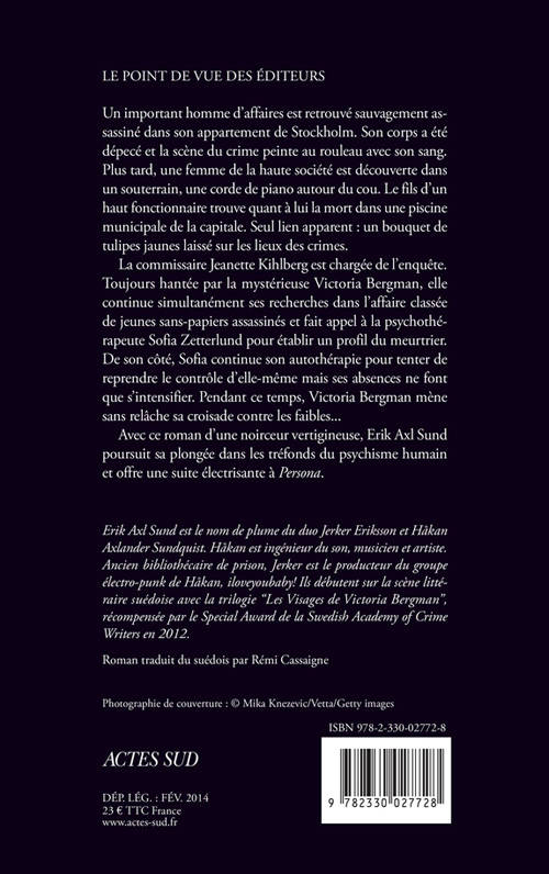 Avec ce roman d'une noirceur vertigineuse, Erik Axl Sund poursuit sa plongée dans les tréfonds du psychisme humain et offre une suite électrisante à «Persona».