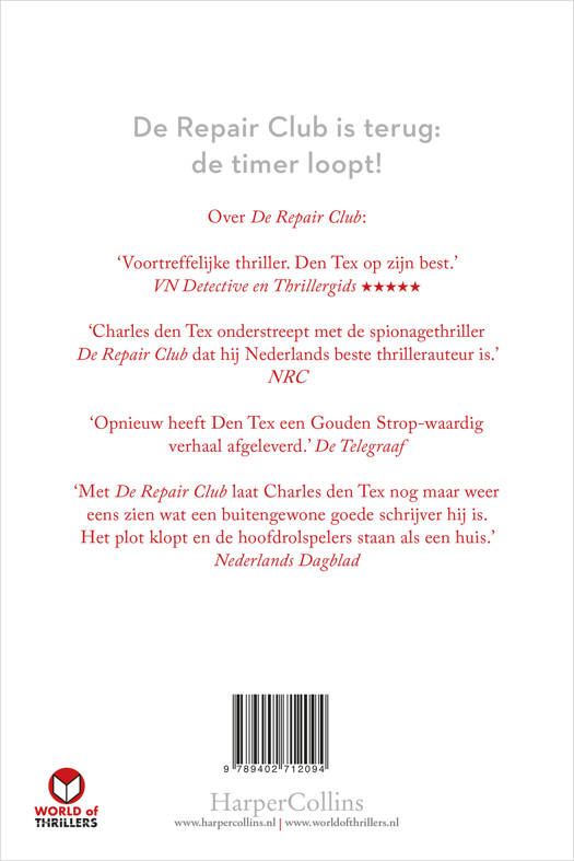‘Charles den Tex onderstreept met De Repair Club dat hij Nederlands beste thrillerauteur is.’ NRC