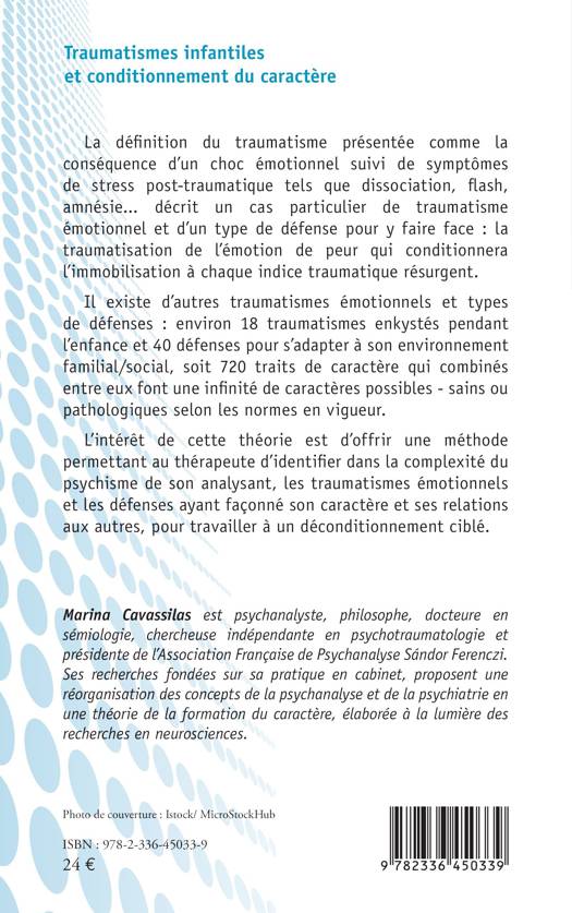 La définition du traumatisme présentée comme la conséquence d'un choc émotionnel suivi de symptômes de stress post-traumatique tels que dissociation, flash, amnésie... décrit un cas particulier de traumatisme émotionnel et d'un type de défense pour y faire face la traumatisation de l'émotion de peur qui conditionnera l'immobilisation à chaque indice traumatique résurgent. Il existe d'autres traumatismes émotionnels et types de défenses: environ 18 traumatismes enkystés pendant l'enfance et 40 défenses pour s'adapter à son environnement familial/social, soit 720 traits de caractère qui combinés entre eux font une infinité de caractères possibles - sains ou pathologiques selon les normes en vigueur. L'intérêt de cette théorie est d'offrir une méthode permettant au thérapeute d'identifier dans la complexité du psychisme de son analysant, les traumatismes émotionnels et les défenses ayant façonné son caractère et ses relations aux autres, pour travailler à un déconditionnement ciblé.