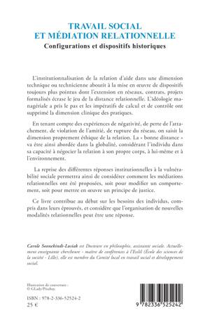 L'institutionnalisation de la relation d'aide dans une dimension technique ou technicienne aboutit à la mise en oeuvre de dispositifs toujours plus pointus dont l'extension en réseaux, contrats, projets formalisés écrase le jeu de la distance relationnelle. L'idéologie managériale a pris le pas et les impératifs de calcul et de contrôle ont supprimé la dimension clinique des pratiques. En tenant compte des expériences de négativité, de perte de l'attachement, de violation de l'amitié, de rupture du réseau, on saisit la dimension proprement éthique de la relation. La bonne distance va être ainsi abordée dans la globalité, considérant l'individu dans sa capacité à négocier la relation à son propre corps, à lui-même et à l'environnement. La reprise des différentes réponses institutionnelles à la vulnérabilité sociale permettra ainsi de considérer comment les médiations relationnelles ont été proposées, soit pour modifier un comportement, soit pour mettre en oeuvre un principe de justice. Ce livre contribue au débat sur les besoins des individus, compris dans leurs éprouvés, et considère que l'organisation de nouvelles modalités relationnelles peut être une réponse.