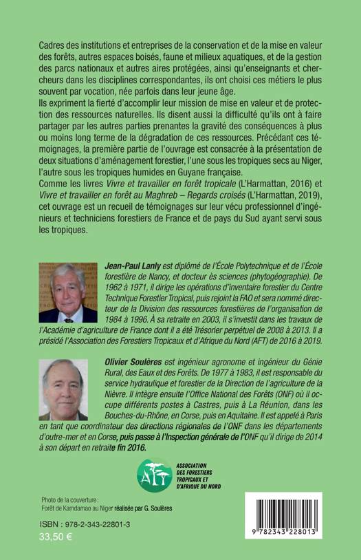 Cet ouvrage est un recueil de témoignages sur le vécu professionnel d’ingénieurs et techniciens forestiers de France et de pays du Sud ayant servi sous les tropiques. Cadres des institutions et entreprises de la conservation et de la mise en valeur des forêts, ils ont choisi ces métiers le plus souvent par vocation. Ils expriment la fierté d’accomplir leur mission de mise en valeur et de protection des ressources naturelles. Ils disent aussi la difficulté qu’ils ont à faire partager par les autres parties prenantes la gravité des conséquences à plus ou moins long terme de la dégradation de ces ressources. Précédant ces témoignages, la première partie de l’ouvrage est consacrée à la présentation de deux situations d’aménagement forestier, l’une sous les tropiques secs au Niger, l’autre sous les tropiques humides en Guyane française.