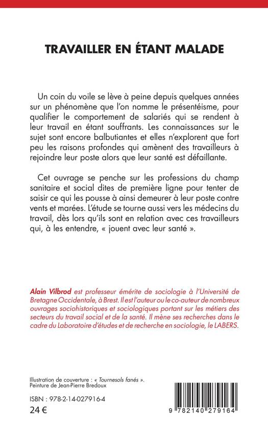 Un coin du voile se lève à peine depuis quelques années sur un phénomène que l'on nomme le présentéisme, pour qualifier le comportement de salariés qui se rendent à leur travail en étant souffrants. Les connaissances sur le sujet sont encore balbutiantes et elles n'explorent que fort peu les raisons profondes qui amènent des travailleurs à rejoindre leur poste alors que leur santé est défaillante. Cet ouvrage se penche sur les professions du champ sanitaire et social dites de première ligne pour tenter de saisir ce qui les pousse à ainsi demeurer à leur poste contrevents et marées. L'étude se tourne aussi vers les médecins du travail, dès lors qu'ils sont en relation avec ces travailleurs qui, à les entendre, « jouent avec leur santé ».