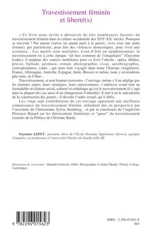 Ce livre nous invite à découvrir les nombreuses facettes du travestissement féminin dans la culture occidentale des XVIè-XXè siècles. Pourquoi se travestir ? Par amour, par patriotisme, pour fuir des violences domestiques, pour vivre une aventure... Les motifs sont multiples. Travestissement, et non femmes travesties : l'ouvrage s'intéresse avant tout au formidable révélateur social, culturel et esthétique qu'est le travestissement. Il met à nu le mécanisme de la construction des genres ; il dévoile l'ordre sexuel qu'il défie.