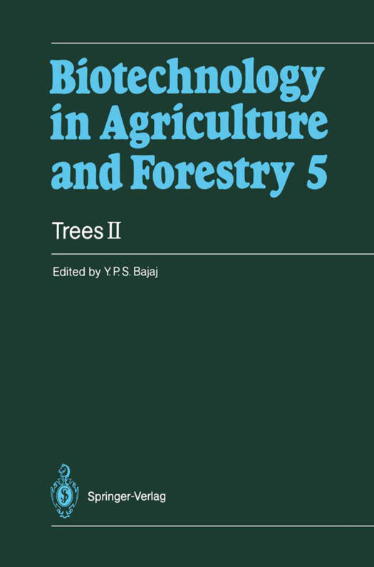 'frees contribute a major part of fuel, fodder and fruit, and are an im- of bioenergy. They are now needed in large numbers more portant source than ever before for afforestation and social forestry, so that fast-grow- ing and multipurpose trees assume great importance. After extensive in- discriminate deforestation and rapid depletion of genetic stocks, efforts are now being made to evolve methods for clonal mass propagation of improved and elite trees. Production of short-duration trees with a rapid turnover of biomass, and induction of genetic variability through in vitro manipulation for the production of novel fruit and forest trees, which are high-yielding and resistant to pests and diseases, and trees which display increased photosynthetic efficiency are in demand. These objectives are well within the realm of horticultural and forest biotech- nology. Some of the recent advances, such as the regeneration of com- plete trees from isolated protoplasts, somatic hybridization, and the Agrobacterium-mediated transformation in various tree species have opened new vistas for the genetic engineering of fruit and forest trees. This book is a continuation of the earlier volume Trees I, and presents 31 chapters on fruit, forest, nut and ornamental trees, such as avocado, pineapple, crabapple, quince, pistachio, walnut, hazelnut, date palm, oil palm, cacao, rubber, maple, sweet-gum, poplars, birches, Chinese tallow, willows, oaks, paper mulberry, rhododendrons, Scots pine, Calabrian pine, Douglas-fir, redwood, ginkgo, cycads and some flowering trees.