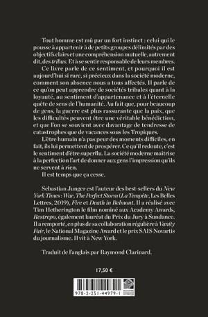 Tout homme est mu par un fort instinct: celui qui le pousse a appartenir a de petits groupes delimites par des objectifs clairs et une comprehension mutuelle, autrement dit, des tribus. Et a se sentir responsable de leurs membres. Ce livre parle de ce sentiment, et pourquoi il est aujourd'hui si rare, si precieux dans la societe moderne, comment son absence nous a tous affectes. Il parle de ce qu'on peut apprendre de societes tribales quant a la loyaute, au sentiment d'appartenance et a l'eternelle quete de sens de l'humanite. Au fait que, pour beaucoup de gens, la guerre est plus rassurante que la paix, que les difficultes peuvent etre une veritable benediction, et que l'on se souvient avec davantage de tendresse de catastrophes que de vacances sous les Tropiques. L'etre humain n'a pas peur des moments difficiles, en fait, ils lui permettent de prosperer. Ce qu'il redoute, c'est le sentiment d'etre superflu. La societe moderne maitrise a la perfection l'art de donner aux gens l'impression qu'ils ne servent a rien. Il est temps que ca cesse.