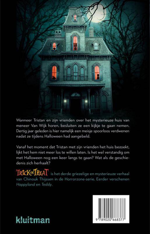 Trick or Treat is het derde griezelige en mysterieuze verhaal van Chinouk Thijssen in de Horrorzone-serie. Eerder verschenen Happyland en Teddy.