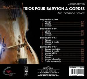 OEuvres très rarement enregistrées sur instruments d'époque, ce CD attire par ses qualités exceptionnelles d'interprétation. Découvrez le génie de Haydn. Très rarement enregistrés sur instruments d'époque, ce disque de quatre des 126 trios pour baryton à cordes de Joseph Haydn, attire par ses qualités exceptionnelles d'interprétation sur les « instruments d'amour » de l'Aria Lachrimae Consort. La musique de Haydn, si finement construite et d'un attrait immédiat, saisit l'auditeur par ses astuces sans cesse novatrices et divertissantes. Les réminiscences d'airs populaires hongrois côtoient aussi l'expression d'une profonde émotion gage du génie très humain de Haydn. Assurément un enregistrement qui fera date.