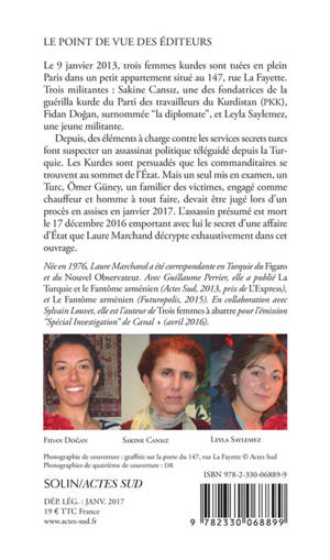 Malgré des faits accablants, les autorités politiques françaises ne réclament aucun compte à la Turquie. Alors que le courage des combattantes kurdes du PKK contre l'Etat islamique en Irak et en Syrie est salué dans le monde entier, la mort de leurs camarades en plein Paris est recouverte d'un linceul de silence. Car les autorités françaises ont choisi de renforcer leur alliance stratégique avec Ankara. Faisant fi de leurs engagements à lutter contre le terrorisme. L'instruction a conclu que Sakine Cansiz, Fidan Dogan et Leyla Saylemez avaient été victimes d'un « acte terroriste ». Sur le sol français, cyniquement, les victimes du terrorisme n'ont donc, à l'évidence, pas toute la même valeur.