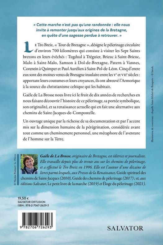Le Tro Breiz, « Tour de Bretagne », désigne le pèlerinage circulaire d'environ 700 kilomètres qui consiste à visiter les Sept Saints bretons en leurs évêchés : Tugdual à Tréguier, Brieuc à Saint-Brieuc, Malo à Saint-Malo, Samson à Dol-de-Bretagne, Patern à Vannes, Corentin à Quimper et Paul Aurélien à Saint-Pol-de-Léon. Cinq d'entre eux sont des moines venus de Bretagne insulaire entre les Ve et VIIe siècles : apportant leurs coutumes et leurs croyances, ils ont abreuvé l'Armorique à la source du christianisme celtique qui les habitait. Gaële de La Brosse nous livre ici le fruit de dix années de recherches en nous faisant découvrir l'histoire de ce pèlerinage, sa portée symbolique, son originalité, et sa renaissance actuelle qui en fait une alternative aux chemins de Saint-Jacques-de-Compostelle. Un ouvrage unique par la richesse de sa documentation et par l'accent mis sur la dimension humaine de la pérégrination, considérée avant tout comme un cheminement personnel, une métaphore de l'aventure de l'homme sur la Terre. AUTEUR Gaële de La Brosse, originaire de Bretagne, est éditrice et journaliste. Elle travaille depuis plus de trente ans sur les chemins de pèlerinage, et a effectué le Tro Breiz en 1996. Elle est l'auteur d'une dizaine de livres parmi lesquels, aux Presses de la Renaissance, Guide spirituel des chemins de Saint-Jacques (2010), Guide des chemins de pèlerinage (2017) , et, aux éditions Salvator, Le petit livre de la marche (2019) et Éloge du pèlerinage (2021).