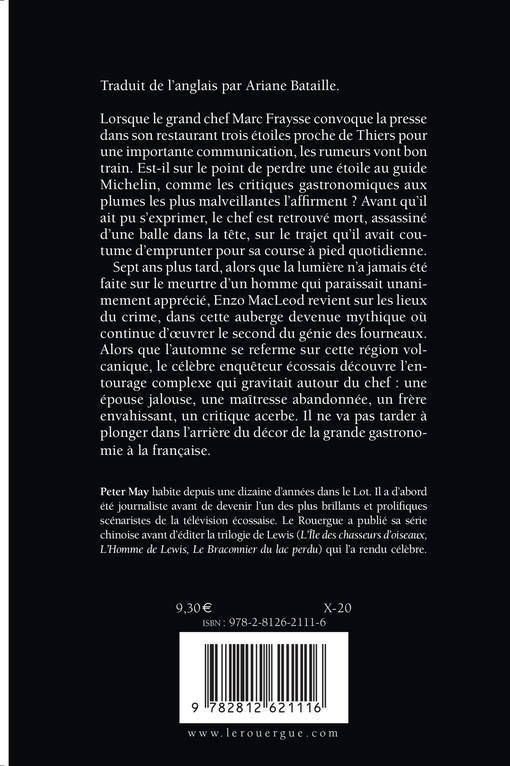 Lorsque le grand chef Marc Fraysse convoque la presse dans son restaurant trois étoiles proche de Thiers pour une importante communi cation, les rumeurs vont bon train. Est-il sur le point de perdre une étoile au guide Michelin, comme les critiques gastronomiques aux plumes les plus malveillantes l'affirment ? Avant qu'il ait pu s'exprimer, le chef est retrouvé mort, assassiné d'une balle dans la tête, sur le trajet qu'il avait coutume d'emprunter pour sa course à pied quotidienne. Sept ans plus tard, alors que la lumière n'a jamais été faite sur le meurtre d'un homme qui paraissait unanimement apprécié, Enzo MacLeod revient sur les lieux du crime, dans cette auberge devenue mythique où continue d'oeuvrer le second du génie des fourneaux. Alors que l'automne se referme sur cette région volcanique, le célèbre enquêteur écossais découvre l'entourage complexe qui gravitait autour du chef : une épouse jalouse, une maîtresse abandonnée, un frère envahissant, un critique acerbe. Il ne va pas tarder à plonger dans l'arrière du décor de la grande gastronomie à la française.