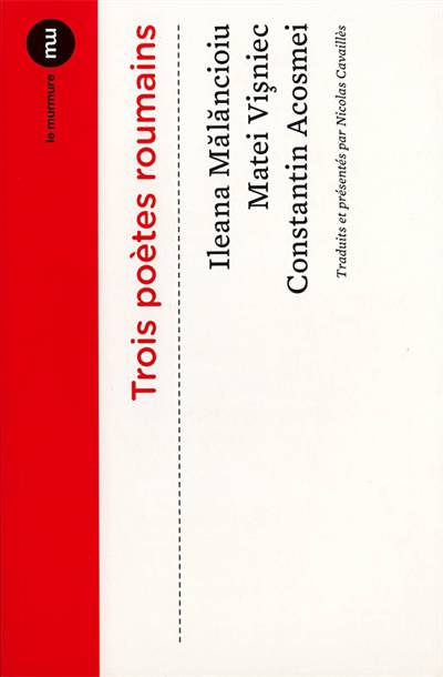 « (je me suis penché / et j'ai tiré sur le tapis / sous mes pieds) » : cette révérence du jeune poète Constantin Acosmei pourrait à elle seule suffire à faire de lui un cas à part au sein de la nébuleuse de poètes roumains contemporains qui, chacun à sa manière, sont autant de cas à part. Ainsi les trois auteurs rassemblés ici ne sont-ils représentatifs que de leur propre marginalité. Né seize ans plus tôt, Matei Vi°niec écrit « sur la transparence de la ville », dans le silence d'une gare déserte : « le train s'arrête une seule minute / le voyageur fou s'approche de moi / et me photographie en pleurant ». Née seize ans plus tôt, Ileana Mãlãncioiu n'emploie pas plus le mot « Roumanie », et préfère citer un auguste précurseur : « Me perdre seul dans le monde, à l'insu de tous, / Sans quoi la vie est dure, ici-bas » (Bacovia).