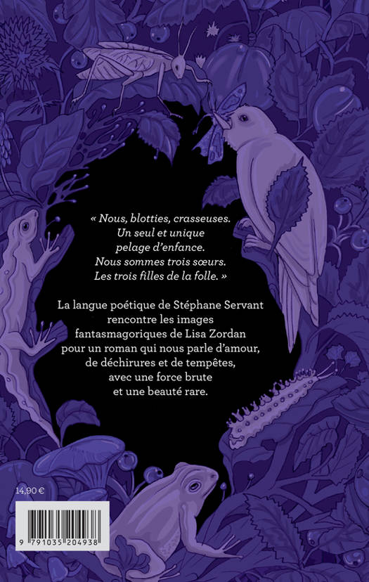 « Nous, blotties, crasseuses. Un seul et unique pelage d'enfance. Nous sommes trois soeurs. Les trois filles de la folle. » La langue poétique de Stéphane Servant rencontre les images fantasmagoriques de Lisa Zordan pour un roman qui nous parle d'amour, de déchirures et de tempêtes, avec une force brute et une beauté rare.