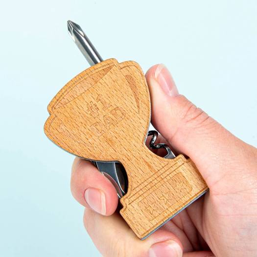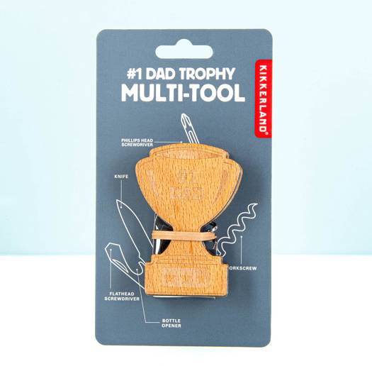 Ce gadget pratique comprend un tournevis cruciforme, un couteau, un tournevis plat avec décapsuleur et un tire-bouchon : tous les essentiels réunis dans un seul outil compact. Assez compact pour être emporté partout et toujours à portée de main quand papa en a besoin. Fibres acryliques, ABS, TPE, PC, fer, acier inoxydable 420, hêtre (2 x 2,75 x 0,5 cm).