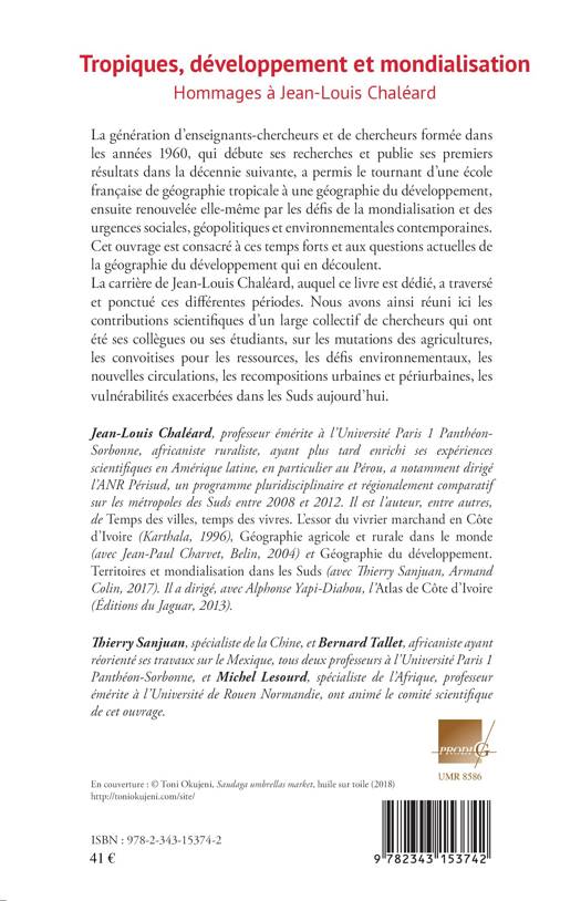 La génération d'enseignants-chercheurs et de chercheurs formée dans les années 1960 a permis le tournant d'une école française de géographie tropicale à une géographie du développement, renouvelée ensuite par les défis de la mondialisation et des urgences sociales, géopolitiques et environnementales contemporaines. Cet ouvrage est consacré à ces temps forts et aux questions actuelles de la géographie du développement qui en découlent. La carrière de Jean-Louis Chaléard, auquel ce livre est dédié, a traversé et ponctué ces différentes périodes.