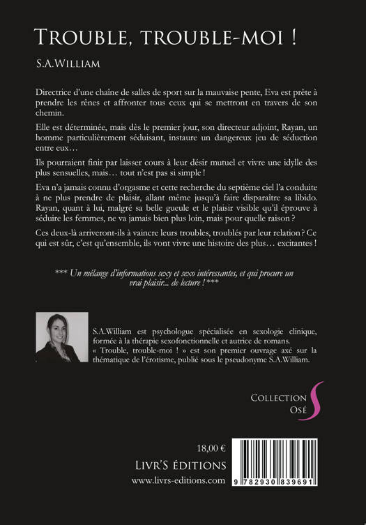 Directrice d’une chaîne de salles de sport sur la mauvaise pente, Eva est prête à prendre les rênes et affronter tous ceux qui se mettront en travers de son chemin. Elle est déterminée, mais dès le premier jour, son directeur adjoint, Rayan, un homme particulièrement séduisant, instaure un dangereux jeu de séduction entre eux… Ils pourraient finir par laisser cours à leur désir mutuel et vivre une idylle des plus sensuelles, mais… tout n’est pas si simple ! Eva n’a jamais connu d’orgasme et cette recherche du septième ciel l’a conduite à ne plus prendre de plaisir, allant même jusqu’à faire disparaître sa libido. Rayan, quant à lui, malgré sa belle gueule et le plaisir visible qu’il éprouve à séduire les femmes, ne va jamais bien plus loin, mais pour quelle raison ? Ces deux-là arriveront-ils à vaincre leurs troubles, troublés par leur relation ? Ce qui est sûr, c’est qu’ensemble, ils vont vivre une histoire des plus… excitantes ! *** Un mélange d’informations sexy et sexo intéressantes, et qui procure un vrai plaisir… de lecture ! ***