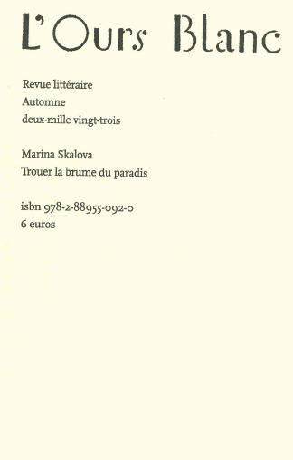 Marina Skalova traduit et commente un ensemble de textes de Yanka. Des mots écrits dans une langue abrupte, qui charrie des images étranges, imprégnées d’éléments folkloriques et mythologiques. Qu’il s’agisse de paroles de chansons ou de poèmes, ils racontent une existence orientée par l’urgence et la précarité, mais aussi par la nécessité de ne pas plier aux exigences d’un État dictatorial moribond. Yanka est la figure de proue d’un punk sibérien sorti de rien, pour venir «trouer la brume du paradis» dans laquelle aime à se dissimuler l’enfer des régimes totalitaires. « Au bord des pôles, il y a des milliers de kilomètres de rien, ou de presque rien. Dans ce presque réside la différence. Le presque est la brèche d’où le punk peut surgir. »