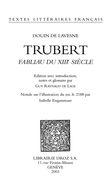 Trubert, cet antagoniste de la courtoisie et de la sagesse, est " un sauvage et un sot ". Vilain borné, inculte, impie à force d’ignorance, il est aussi trompeur, détrousseur, égrillard, éventreur. En le dotant de la nature trouble des fous, et en le plongeant dans un " roman à rire ", Douin fournit le contre-exemple de la tradition hostile au vilain. Au rythme des fables qui s’accumulent dans ce gros fabliau, Trubert satisfait son appétit du gain, assouvit son appétence jouissive et surtout exerce son goût immodéré pour l’acharnement méchant. Tant de malfaisance risible de la part d’un seul – tour à tour négociant simplet et chanceux, médecin fruste et fourbe, chevalier Haudecœur effarant et efficace, travesti Coillebaude profiteur et prophète, dérisoire David aux prises avec un nouveau Golïas –, pique l’attention, force la complaisance pour ses affaires et établit en définitive notre indulgence pour le personnage.