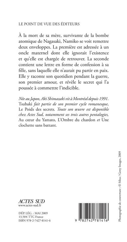 À la mort de sa mère, survivante de la bombe atomique de Nagasaki, Namiko se voit remettre deux enveloppes. La première est adressée à un oncle maternel dont elle ignorait l'existence et qu'elle est chargée de retrouver. La seconde contient une lettre en forme de confession à sa fille, sans laquelle elle n'aurait pu partir en paix. Elle y raconte son quotidien pendant la guerre, son premier amour, et révèle le secret qui l'a poussée à commettre l'indicible.