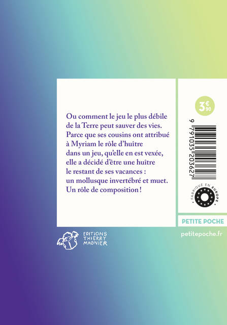 Myriam ne supporte pas les plaisanteries de ses cousins et prend au pied de la lettre le surnom qu'ils lui ont donné : l'huître. Du coup, elle devient mutique : les huîtres ne parlent pas, c'est bien connu ! Où comment le jeu le plus débile de la Terre peut sauver des vies.