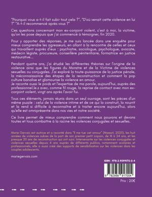 Tous ces éléments, jamais réunis dans un seul ouvrage, sont les pièces d'un même puzzle : celui de la violence intime et de ce qui la construit, la nourrit et la rend si difficile à reconnaître et à traiter encore aujourd'hui, alors qu'elle est omniprésente dans nos vies et notre société.