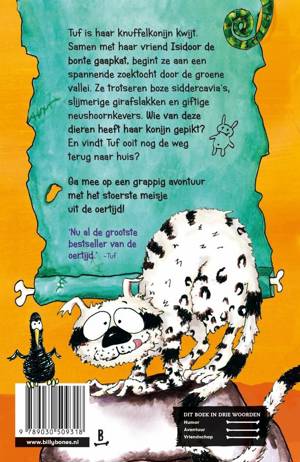 Tuf is haar knuffelkonijn kwijt. Samen met haar vriend Isidoor de bonte gaapkat, begint ze aan een spannende zoektocht door de groene vallei. Ze trotseren boze siddercavia's, slijmerige girafslakken en giftige neushoornkevers. Wie van deze dieren heeft haar konijn gepikt? En vindt Tuf ooit nog de weg terug naar huis?