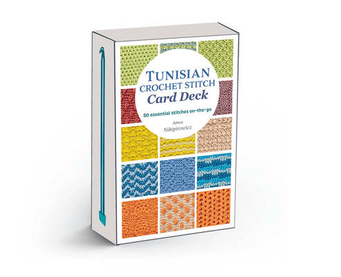 Tunisian crochet has experienced a great revival in recent years--a surge in popularity that is showing no signs of slowing down, helped by an increase in the online availability of instructional videos, new designs, and blog posts. Tunisian is a blend between knitting and crochet offering the best aspects of both techniques. It's quick and creates a dense, sturdy, durable, and flexible fabric that is worked on a hook. In this handy little box, find 50 beautiful Tunisian crochet stitches in a handy card deck, which allows you to quickly mix-and-match stitches so you can keep hooking wherever you are. These portable cards place stitch instructions right at your fingertips. The stitches have been purposefully selected to mix and match beautifully encouraging your Tunisian crochet adventure. Also included is an instructional booklet detailing Tunisian crochet basics, hook conversion tables, and skill level notifications. Every card includes: Type of stitch; name of stitch, close-up photograph, short introduction, skill level (1 to 3)Step-by-step written crochet patternTunisian crochet chartThere is also a useful 32-page booklet full of basic crochet techniques and stitches. --Anna Nikipirowicz