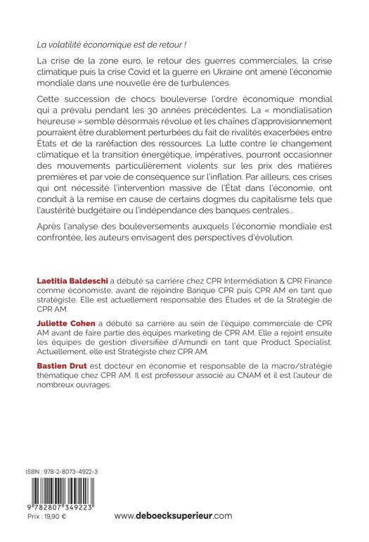 Cette succession de chocs bouleverse l’ordre économique mondial qui a prévalu pendant les 30 années précédentes. La « mondialisation heureuse » semble désormais révolue et les chaînes d’approvisionnement pourraient être durablement perturbées du fait de rivalités exacerbées entre États et de la raréfaction des ressources. La lutte contre le changement climatique et la transition énergétique, impératives, pourront occasionner des mouvements particulièrement violents sur les prix des matières premières et par voie de conséquence sur l’inflation. Par ailleurs, ces crises qui ont nécessité l’intervention massive de l’État dans l’économie, ont conduit à la remise en cause de certains dogmes du capitalisme tels que l’austérité budgétaire ou l’indépendance des banques centrales...