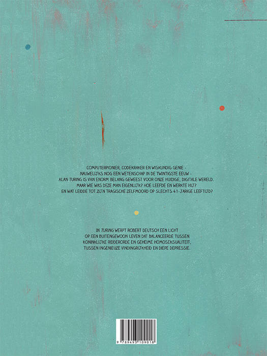 Robert Deutsch belicht in 'Turing' een buitengewoon leven dat heen en weer ging van koninklijke ridderslag naar geheime homoseksualiteit, van geniale vindingrijkheid naar diepe depressie. Robert Deutsch, in 1981 in Köthen geboren, studeerde in Halle illustratie en communicatiedesign. Sinds 2012 werkt hij als zelfstandig illustrator en grafisch ontwerper. Zijn werk is tentoongesteld in onder meer Berlijn, Leipzig, Porto en Los Angeles, en gepubliceerd in talloze tijdschriften. In 2014 werd Deutsch onderscheiden met de Giebichen Stein Designpreis in de categorie 'Beste communicatie', en met zijn debuut 'Turing' was hij in 2015 finalist voor de Comicbuchpreis van de Berthold-Leibinger Stiftung. In het juryrapport schreef stripjournalist Lars von Törne: "In kunstzinnige acrylschilderingen die aan de jaren vijftig doen denken, zet illustrator Robert Deutsch de biografie neer van de Britse wiskundige en informatica-pionier Alan Turing. Een uitgekiende pagina-opmaak geeft op speelse, charmante maar ook complexe wijze de grillige kanten van Turings persoonlijkheid weer, alsmede de tragische kanten van zijn leven als homoseksueel in een tijd dat dit in Groot-Brittannië strafbaar was." Als basis voor zijn grafische biografie gebruikte Deutsch het boek 'Enigma' van Andrew Hodges, maar bepaalde gedeelten van zijn verhaal zijn fictief.