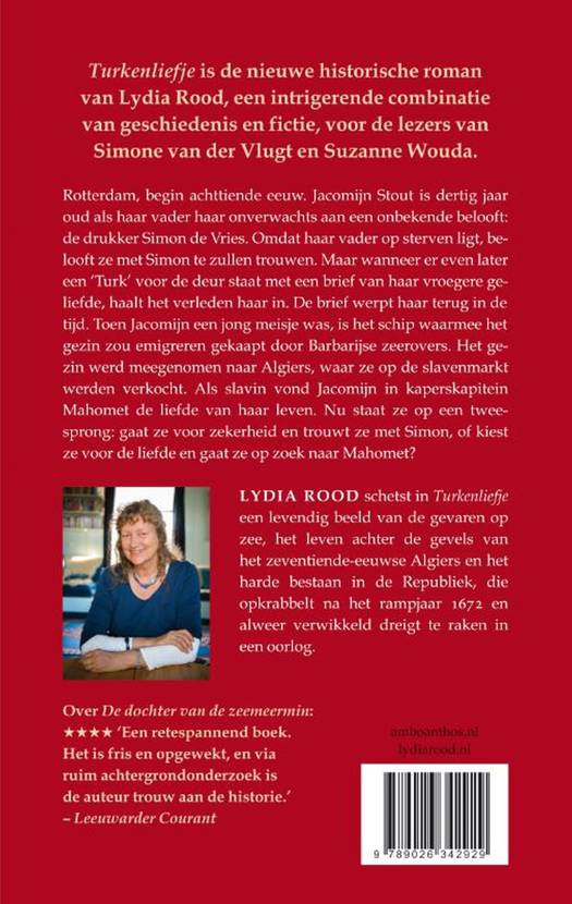 Lydia Rood schetst in Turkenliefje een levendig beeld van de gevaren op zee, het leven achter de gevels van het zeventiende-eeuwse Algiers en het harde bestaan in de Republiek, die opkrabbelt na het rampjaar 1672 en alweer verwikkeld dreigt te raken in een oorlog.