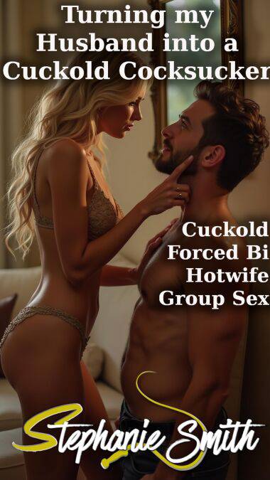 "Turning my Husband into a Cuckold Cocksucker" is a steamy erotic tale where James finds himself kneeling before the men his wife, Jenna, has invited into their home for an evening of unbridled passion. Jenna, a blonde bombshell with an insatiable appetite for pleasure, orchestrates a night where she takes control and shares her body with three handsome strangers named Mark, Antonio, and Liam. The narrative unfolds as James watches, participates, and ultimately succumbs to his cuckold fantasy. Throughout the evening, Jenna teases, taunts, and satisfies her husband with her seductive commands, pushing James' boundaries and leaving him craving more. This explicit story delves into the raw and intense emotions of a cuckolding relationship, culminating in an explosive finale that will leave readers breathless.