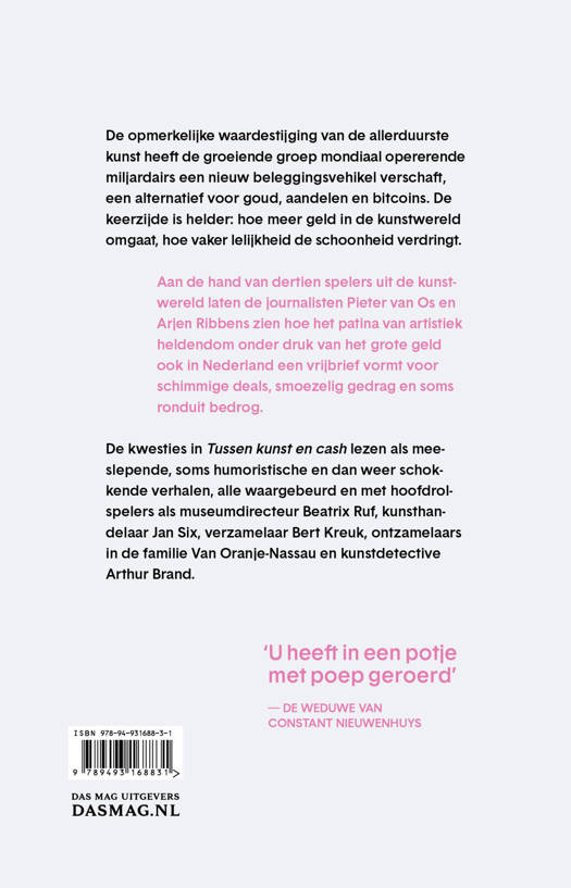 Aan de hand van dertien spelers uit de kunstwereld laten de journalisten Pieter van Os en Arjen Ribbens zien hoe het patina van artistiek heldendom onder druk van het grote geld ook in Nederland een vrijbrief vormt voor schimmige deals, smoezelig gedrag en soms ronduit bedrog.